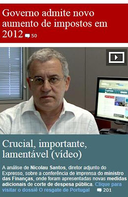 Ora, se aquelas políticas não serviam eram precisas novas, não eram? Ei-las. E se a direita agora no poder nunca escondeu realmente ao que vinha, a esquerda do PCP e do BE pode felicitar-se por ter contribuído com denodo para abrir caminho à política dos restos e do assistencialismo. Quanto ao ministro Mota Soares, pode bem revelar-se um profeta. Num governo que aumenta 20% os transportes e prevê um passe social só "para muito pobres", confisca metade do subsídio de Natal sem explicar porquê, prevê aumentar ainda mais o IVA e quer tornar os despedimentos mais baratos ou mesmo grátis, a previsão de um aumento do risco de pobreza é pura honestidade. Mesmo que não seja. » [DN]
